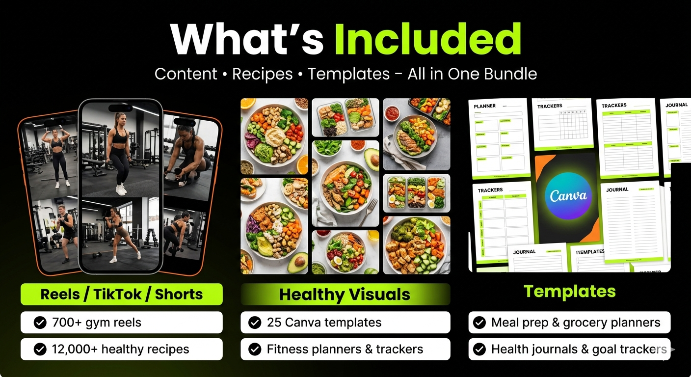 This collection combines ready-to-use content, customizable templates, and valuable resources to help you maintain consistency and expand your presence in the fitness niche.